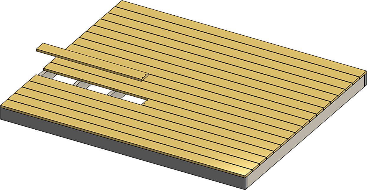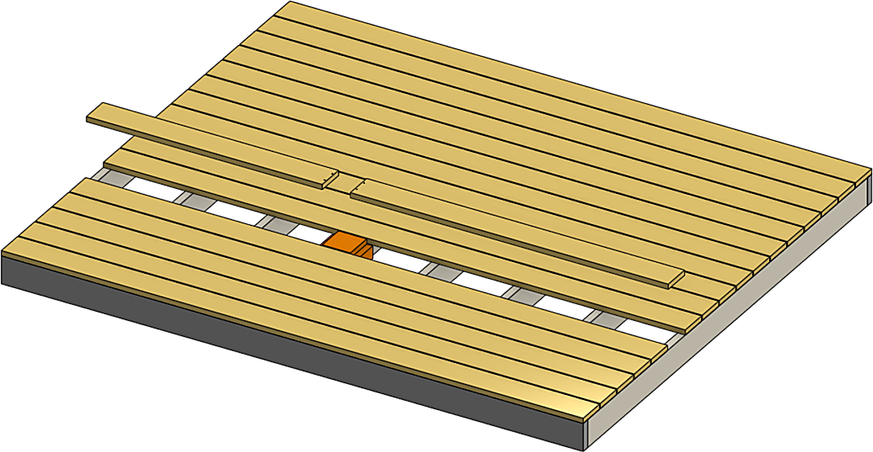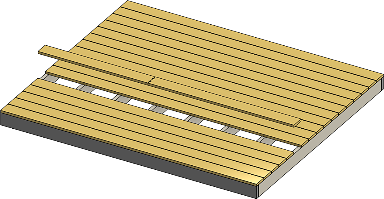 5. Reinstall and Fasten the Trimmed Boards Set the trimmed boards onto the Deck Repair Patch Block and fasten them in place to complete the repair.